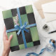 Papel De Presente Gradiente Xadrez Preto Verde Oliva Moderno