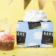 Graduação criativa decoração de presente e festa de formando com bonés de formatura pretos e dourados sobre fundo azul-céu. Para personalizar o texto de edição para adicionar o nome do formando e o ano de classe do mais velho.