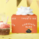 Graduação criativa de presente para a Classe de "25 formando com boné de formatura preto com fita de ouro sobre fundo laranja. Para personalizar editar texto para adicionar seu nome.