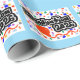 Glossy = Optional, Wrapping Paper, With a Drawing/Design, of the Word = Graduation 2026= in Black and White color, With a Colorful Confetti, and a Red Balloon, = (Drawing/Design by P.J.M.). =On it, With a Light Blue Color Background.