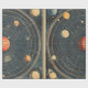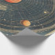 Um diagrama celeste cativante que apresenta um planeta grande, semelhante a Júpiter, no centro, rodeado por planetas e corpos cósmicos em órbitas concêntricas precisas. Colocado sobre um fundo profundo e estrelado com uma grade detalhada e marcas numéricas, esse papel de embrulho inspirado pela astronomia é perfeito para entusiastas do espaço, stargazers e amantes da ciência planetária. Um presente ideal para eventos celestes, solstícios e fascinados pelos mistérios do cosmos.