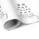 Gráfico de exames oculares com todas as letras borradas, exceto as palavras olho e teste visto através dos óculos