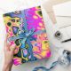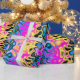 Campos retrorurbanísticos CMYK amontoados em chamas tendril. (Esta versão do design é dimensionada com 18" de largura por área repetida única, para corresponder melhor à impressão dos rolos de papel de embalagem.)