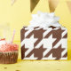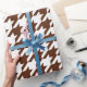 Um papel de envolvimento projetou com um teste padrão marrom e branco do houndstooth em tamanho grande. Você pode mudar o marrom para uma cor diferente.