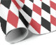 Papel de embrulho concebido com um padrão de harlequina vermelho-escuro, preto e branco, de grande dimensão. Personalize a cor branca de fundo entre outras opções.