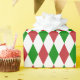Papel de embrulho concebido com um padrão de harlequina vermelho-escuro, verde e branco, de grande dimensão. Personalize a cor branca de fundo entre outras opções.