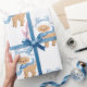 Este papel de plástico de presente de Natal certamente fará seu pequeno sorriso nesta temporada de festas com seu padrão fofo e engraçado. Esta design apresenta um simples fundo branco com uma rena bonita que tem um bonito cachecol azul em volta do pescoço e um chapéu azul e branco liso. Papel perfeito para embrulhar o Natal para um menino ou para uma menina.