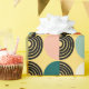 Este papel de embrulho tem um design moderno do século médio de semicírculos sólidos, combinados com semicírculos concêntricos a preto e branco, tudo sobre fundo dourado. Se você gosta do design, mas prefere cores diferentes, me mande mensagem.