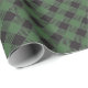 Green buffalo plaid wrapping paper featuring a black and green checkered pattern.