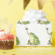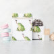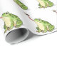 A green frog with large spots extends its tongue to catch a fly, sitting against a neutral background, showcasing a playful, lively artwork style reminiscent of Matsumoto Hoji.
