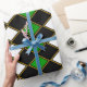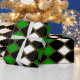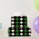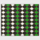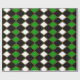 Os diamantes verdes destacam este design de harlequin preto e branco ousado perfeito para todas as ocasiões.