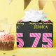 Este divertido design de papel de embrulho com tema de aniversário apresenta um grande número de "75", com um padrão cor-de-rosa escuro e listras de rosa claro. Também apresenta a mensagem "Feliz 75.º aniversário", e um nome personalizável. O fundo é preto colorido. Um papel de embrulho como este pode ser usado para dar um presente ou presente em homenagem ao 75º aniversário de alguém. [~Z0000376]