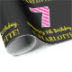 Este divertido design de papel embrulhado com tema de aniversário apresenta um grande número "7", com um padrão cor-de-rosa escuro e listras de rosa claro. Ele também apresenta a mensagem "Feliz 7 Aniversário", e um nome personalizado. O fundo é preto colorido. Um papel de embrulho divertido como este pode ser usado ao embrulhar presentes que são dados a alguém em comemoração de seu aniversário de 7. [~Z0000376]