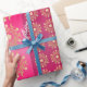 Papel De Presente Greve Vermelha e Fuchsia com Luas e Estrelas Doura