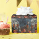 Libere o espírito assustador com esta design sombria do Dia das Bruxas apresentando um bando de cachorros sob um céu escuro e iluminado, cercado por morcegos voadores e abóboras brilhantes. Perfeito para aqueles que amam um toque de diversão terrível com seus amigos peludos!