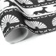 Este design apresenta silhuetas de galgos na esfinge e posições de pé em um clássico esquema monocromático de preto e branco. Embarcando um estilo Art Deco, os galgos são acompanhados por um motivo de fã. De um modo geral, a impressão é elegante e subestimada.