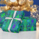 Papel De Presente Groovy Abstrato com espiral verde e azul
