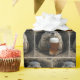 A groundhog is humorously holding a large mug of frothy beer outside its burrow.