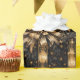 Design de Natal preto e dourado único com fitas douradas sobre fundo preto gótico.