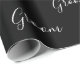 Escrito branco elegante em papel de embrulho personalizado de fundo preto.