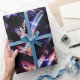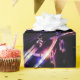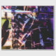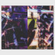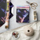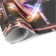 Os trabalhos de arte neste papel de envolvimento são uma fotografia original de um grupo do cilindro. Os cilindros pretos brilhantes com suas bordas prateadas refletem as cores das luzes no estúdio, nos azuis, nos vermelhos e nos verdes. Os pratos acima dos cilindros esperam para ser golpeados.
