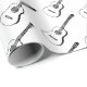 A ilustração preto e branco da guitarra, guitarra acústica modelou o papel de envolvimento para melómanos.