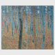 Isto é baseado em trabalhos de arte clássicos de pintura natural de Gustav Klimt, Beech Grove 1, 1902. O trabalho de arte retrata uma floresta densa de pássaros altos e finos, com troncos pálidos marcados por linhas escuras e verticais. A folhagem é representada em tons azuis, verdes e amarelos, acrescentando à cena uma sensação de profundidade e vibração. O chão da floresta é coberto por uma camada de folhas laranja e marrom, criando um contraste impressionante com os troncos mais leves das árvores. A composição geral usa técnicas pontilhistas e impressionistas, dando à imagem uma aparência viva, texturizada. A verticalidade das árvores enfatiza a estrutura serena e ritmada da floresta.