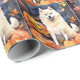 Papel De Presente Halloween American Akita Com Pumpkins Assustado