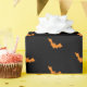 Este pacote de presente exclusivo apresenta um padrão repetido de morcegos cor de laranja do Halloween sobre um fundo preto opcional. O tamanho dos morcegos pode ser alterado de acordo com as suas necessidades.