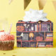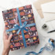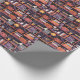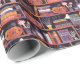 Papel de embrulho de Halloween com um padrão com uma prateleira assustadora, jack-o-lanternas e morcegos. Perfeito para embrulhar favoritos para festas ou presentes de aniversário de outubro. Arte original de Marketa Stengl.