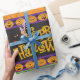 Fundo das teias de aranha laranja e verde. A imagem central tem um motif clássico de Halloween. Elementos de design, sutis e detalhados, incluindo olhos assustadores, morcegos, e uma borda de abóboras de Halloween. Você vai adorar! Todas as imagens e trabalho de arte ©JESTERFUL