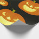 O material de embrulho de presente que você precisa para presentes de Halloween. Este papel de embrulho preto tem abóboras cor de laranja assustadoras por todo o lado.