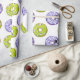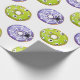 Papel de embrulho para o tema do Halloween com ilustração pintada e fofa de doces apimentados, com rosquinhas roxas e aranha preta e monstro de olhos verdes com olhos googley! Use para sua próxima festa temática do Dia das Bruxas ou papel de álbum.