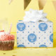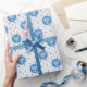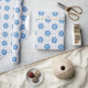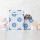 Aqui temos um papel de embrulho que apresenta um círculo azul-céu com uma menorah sobre ele em um fundo com múltiplas bolinhas azuis e padronizado. Este documento está disponível em vários tamanhos e corresponde a outros papéis de embalagem, papéis de tecidos, sacos de presentes e um cartão de saudação. Isso certamente fará uma adição perfeita aos seus presentes nesta temporada de festas.