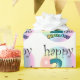 Blauw gelukkige tweede verjaardag. Leuk om te geven als cadeau aan iemand die twee jaar is geworden. Vrolijk design met regenboog kleuren.