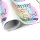 roze derde tweede verjaardag. Leuk om te geven als cadeau aan iemand die drie jaar is geworden. Vrolijk design met regenboog kleuren.