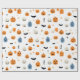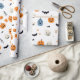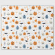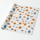 Wrapping paper for children and babyes with happy pumpkins, smiling ghosts. In nice white background and colorful drawings, very nice to wrap your gifts and customize your halloween day.