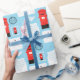 Repetir o padrão de caixas de correio, letras, carimbos, envelopes, planos de papel e marcas de posto ao estilo britânico, em fundo azul.