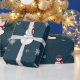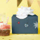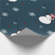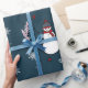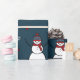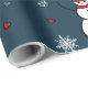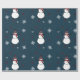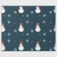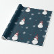 Feliz homem de neve com corações vermelhos e flocos de neve por aí com fundo azul marinho