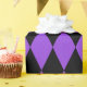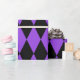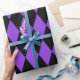 Papel de embrulho concebido com um padrão de harlequina preto e roxo em dimensões extras grandes. Personalize a cor de fundo roxa de uma forma fácil.