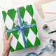 Um papel de embrulho projetado com um padrão de harlequin verde e branco em tamanho extra grande. Personalize a cor branca de uma forma fácil.