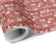 Mergulhe numa serena terra maravilhosa do inverno com este charmoso padrão de férias, com casas carregadas de neve e árvores brilhando em luzes festivas em um pano vermelho de marfim.