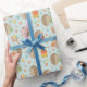 Papel De Presente Hedgehogs bonitos com azul de folhas pequenas