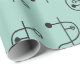 Este papel embrulho tem uma design moderna do século médio que se parece com uma hélice de DNA com uma linha vertical que tem uma linha curva passando por ele com pequenas linhas com círculos nas extremidades.
