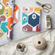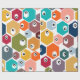 Este papel de embrulho tem o médio de hexágonos moderno do século design em muitas cores com círculos pretos e brancos a dentro.