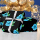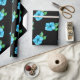 Um belo papel de embrulho azul e preto com um bonito padrão floral de flores azuis de hibisco espalhadas sobre uma base preta. Este elegante e floral presente embrulhado dá definitivamente vibrações tropicais, havaianas e seria mais adequado para outros usos também, como projetos de artesanato de papel, fazer de cartão, raspagem e muito mais.