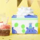 Um belo hipopótamo com um soprador de festa na boca e um chapéu de festa na cabeça dele! Balões à sua volta, prontos para comemorar na festa!