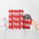 Este papel de embrulho divertido fará a sua feliz de feriados! As palavras "ho ho ho" aparecem repetidamente em branco sobre um fundo vermelho de Natal.