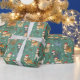 Premium wrapping paper featuring a playful repeating pattern of adorable cats & dogs in Santa hats and scarves surrounded by gifts, bones, and snowflakes on a cheerful green background—ideal for pet lovers' holiday gifts.