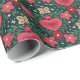Papel De Presente Holiday Hearts & Flowers Pattern–Red, Green & Gold